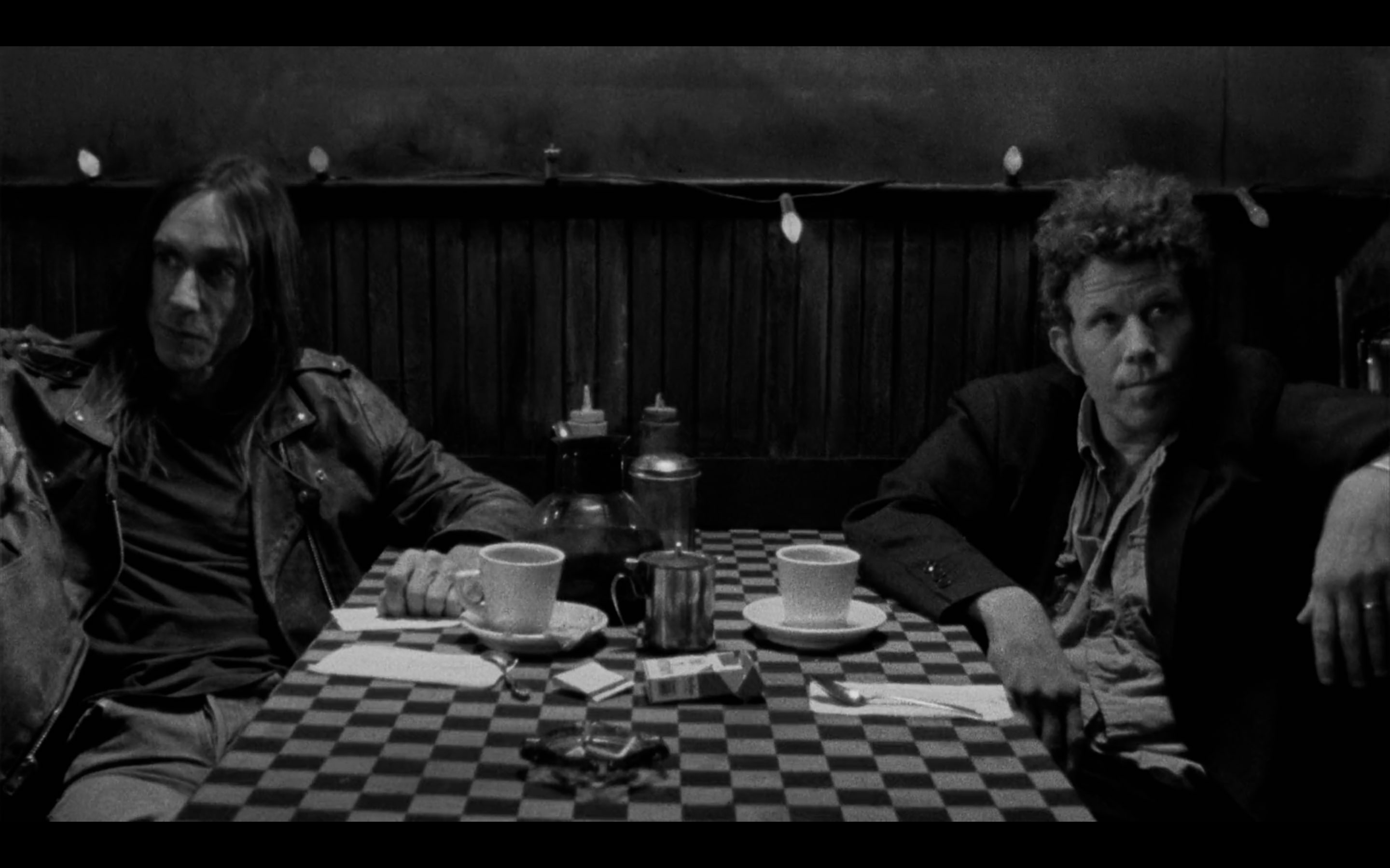 - 록 음악의 전설 이기 팝과 톰 웨이츠가 마주 앉은 장면은 어색함의 향연이다. 두 사람은 처음엔 예의를 갖추지만, 대화는 곧 미묘한 경쟁으로 흐른다. 서로의 금연 사실을 강조하면서도 “이번만”이라며 함께 담배를 피우는 장면은 이중적이고 인간적인 모습을 보여준다. 이 에피소드는 가까워지려는 의지와 자존심 사이에서 흔들리는 인간 관계의 긴장감을 잘 드러낸다. 말투는 농담 같지만 그 안엔 자기 방어와 견제가 숨어 있다. 우정이 시작될 듯하면서도 맺히지 않는 그 미묘한 공기가, 커피와 담배가 만들어내는 진짜 현실이다.