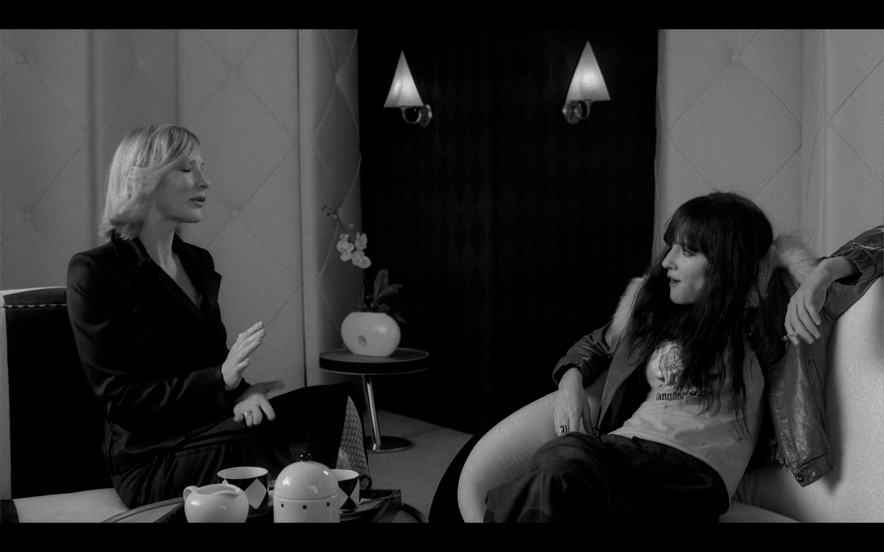 통일된 흑백 톤도 중요한 의미가 있다. 색채가 없는 화면 덕분에 여러 가지 서로 다른 이야기가 시각적으로 한 세계에서 벌어지는 일처럼 느껴지고, 관객은 장면마다 대화와 표정에 더욱 집중하게 된다. 컬러의 화려함이 사라진 자리에서 커피잔을 잡은 손끝의 떨림이나 담배 연기가 피어오르는 모양 같은 디테일이 오히려 도드라진다. 이는 이 영화의 핵심인 대화의 묘미를 극대화하는 장치라고 할 수 있다.