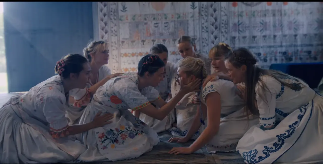 그렇다면 감독은 이와 같은 “앎”에 대해 무엇을 말하고 싶었을까. 주인공들과 호르가 사람들을 대비하면서 풀어 가보자. 앞선 두 그룹의 주요한 사건인 두 장면, 대니의 부모님과 여동생이 자살을 하는 장면과 호르가 사람들 중 72세가 지난 사람들이 절벽에서 떨어지는 장면을 예로 들 수 있다. 대니는 부모님과 여동생이 죽음을 직감하고 있다. 여동생은 조울증을 앓고 있고 이전에도 신경발작을 일으킨 적이 있다. 그리고 여동생이 마지막으로 보낸 메일을 통해 대니는 어렴풋이 여동생의 죽음을 예감하고 있다. 그리고 그 일이 실제로 일어났을 때, 대니는 한 없이 슬퍼하고 주변에서 “가족”이라는 단어만 들어도 헛구역질을 하며 예민하게 반응한다. 이렇게 가족에 대한 대니의 반응은 수동적이고 회피하려는 경향을 보인다.
