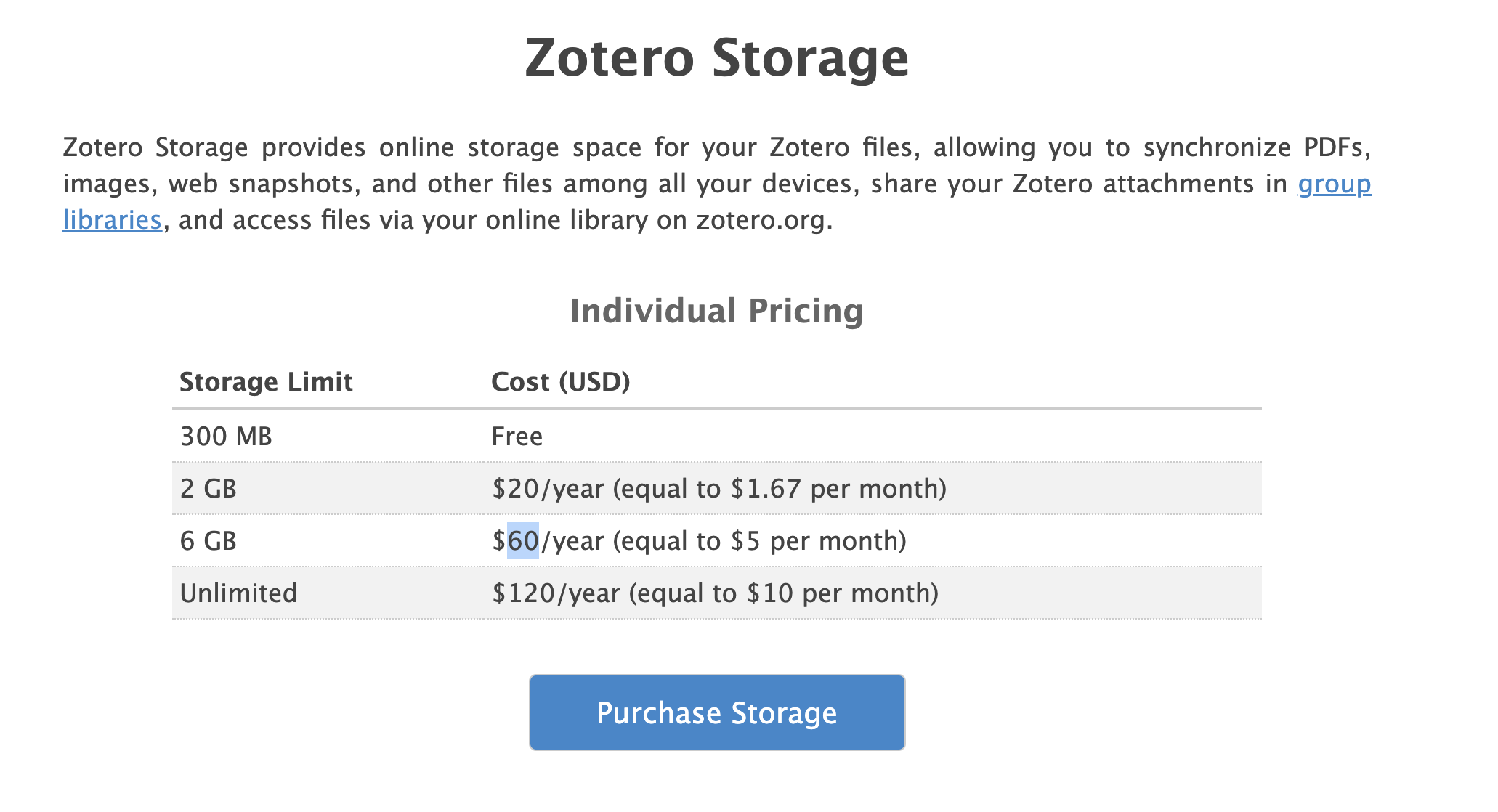 그렇게 Zotero를 사용하고 있던 와중. 문제가 하나 생겼습니다. 최근 영어 공부할 일이 생겨서 단어장을 pdf로 받아 평소처럼 Zotero에서 관리하고 있었는데, 이걸 갖고 있는 아이패드로도 이동하는 중에 보고 싶었습니다. 물론 다른 앱(good notes, files 등….)을 사용하면 되지만, 저는 무엇보다 하이라이팅과 메모, 기능을 사용하고 싶었고 한곳에서 관리하고 싶었습니다. 즉, 아이패드에서 했던 작업을 맥북, 휴대전화에서도 보고 싶었습니다. Zotero에서도 이런 기능을 제공합니다. Zotero Storage서비스를 이용하면 되는데, 이게 은근히 돈이 나갑니다. 공간 제한도 있고요.